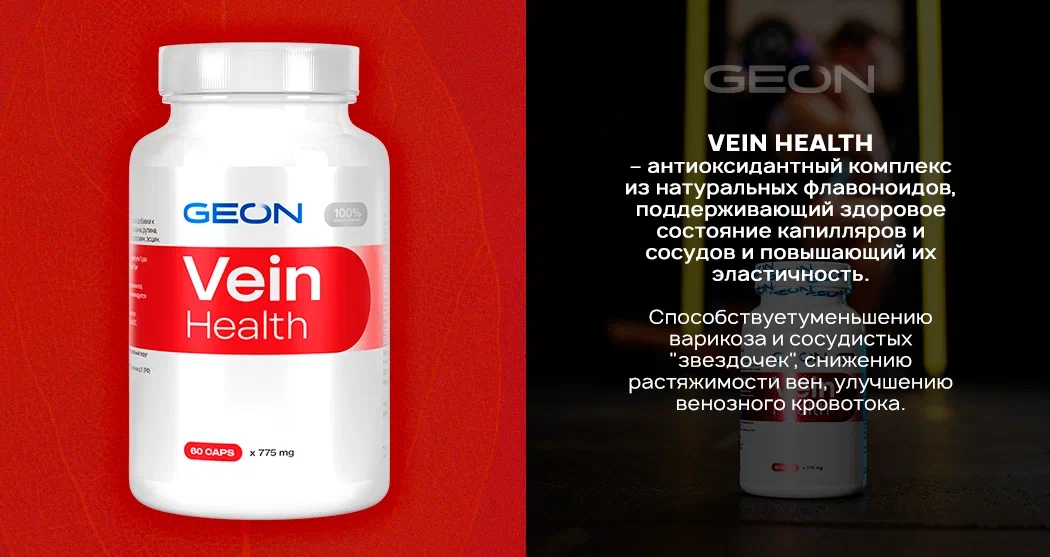 Именно за последние десятилетия так выросло число случаев не только варикозной болезни вен (ВБВ), но возникновения геморроидальных узлов. Последняя патология является очень трудным диагнозом в плане своевременности лечения, так как большинство людей стесняются обращаться при появлении первых симптомов, когда всё можно устранить более простыми методами. Данная патология очень часто связана не только с поднятием больших весов, что делает спортсменов такими же уязвимыми к этому недугу, как вышеописанных пациентов с минимум движения. Ещё одна группа, у которой часто возникает геморрой – это женщины после беременности и родов, которые из-за сильного настуживания могут заиметь данное заболевание. Что объединяет офисных сотрудников, спортсменов и женщин после родов? Возможность профилактики проблем, особенно, если в семье такие патологии были у родственников. Кроме уже сказанных способов предотвращения проблем (движение и активная прокачка крови по сосудам ног), можно рекомендовать использование препаратов для профилактики. Существуют аптечные венотоники и спортивные составы, действие которых направлено на разные процессы. Но стоит сразу внести ясность, что любые таблетки будут бесполезны при отсутствии адекватной физической активности. Имеется в виду опасность как адинамии, так и слишком тяжёлые нагрузки, без нормального восстановление.Vein Health от GEON – профилактика патологий вен на ранних стадиях