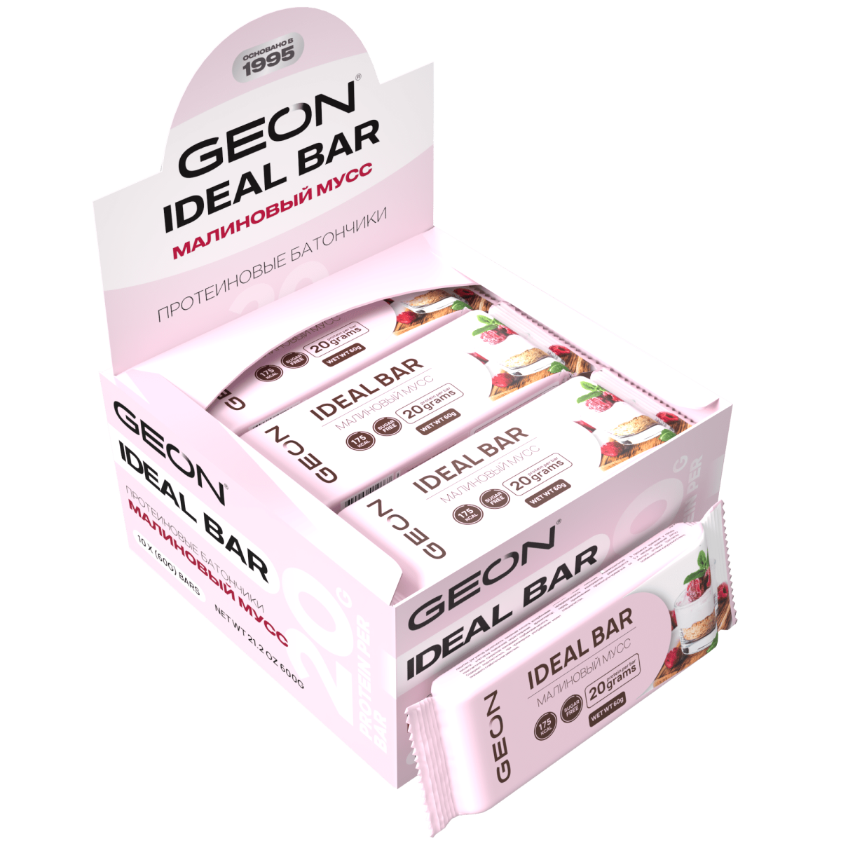 Протеиновые батончики GEON IDEALBAR Малиновый мусс, 33% белка (60г х 10шт.)
