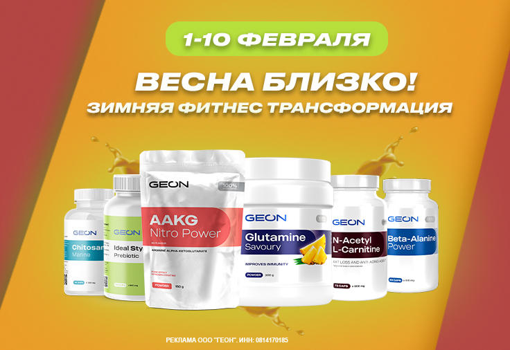 Друзья, с 1 по 10 февраля предлагаем вам уникальную возможность начать свой путь к лучшей форме вместе с GEON™! Вас ждут эксклюзивные скидки на наши лучшие продукты для зимнего фитнеса. Подготовьтесь к весне вместе с нами!
